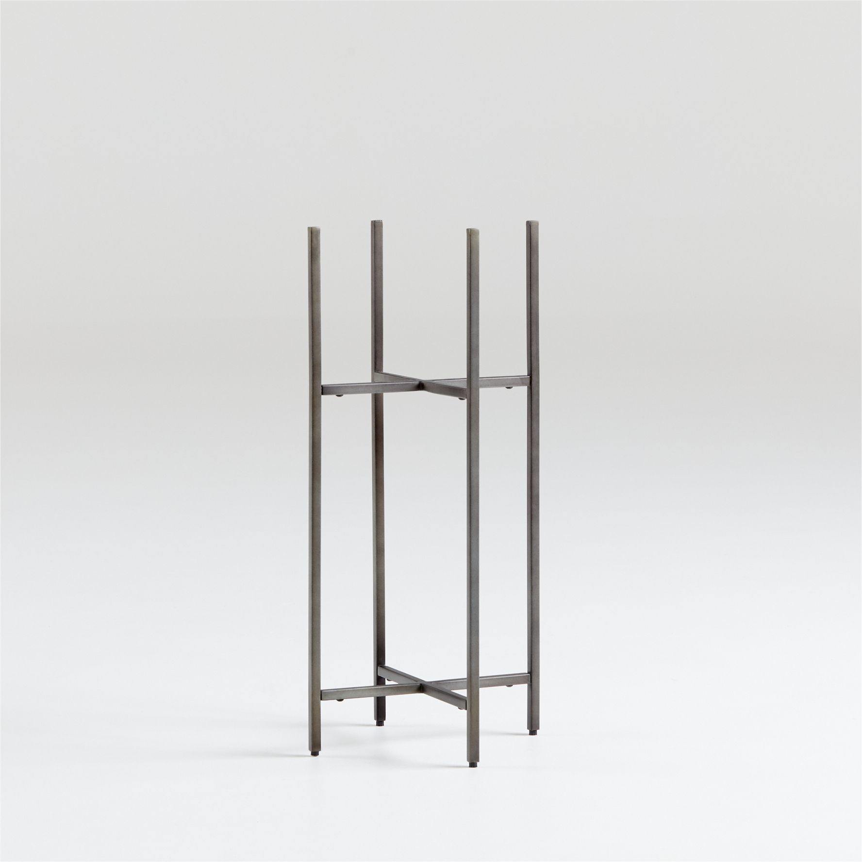 Handcrafted with a warm, antiqued bronze finish, this short iron plant stand supports our Dundee planter with slender legs and crossbar supports. With its subtle grey tones, the bronze finish suits a variety of palettes and decors.